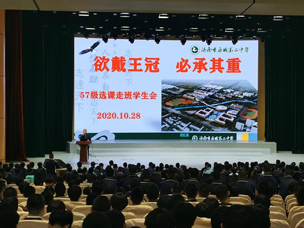 10月28日下午,历城二中高一级部在闻韶艺术馆大礼堂召开第一次学情调研分析大会。会议由历城二中副校长、高一级部主任田庆民主持,高一全体学生参加会议。