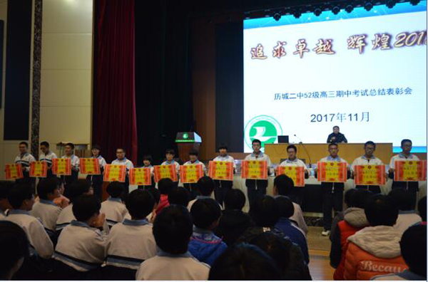 11月27日下午,历城二中高三级部在学校礼堂召开十一月期中考试表彰大会。本次大会由张海光主任主持。
