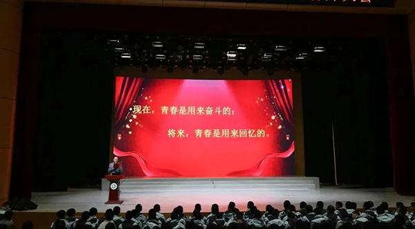 2月21日,历城二中56级高三全体同学在闻韶艺术馆召开百日誓师大会,会议由级部副主任张希峰主持。