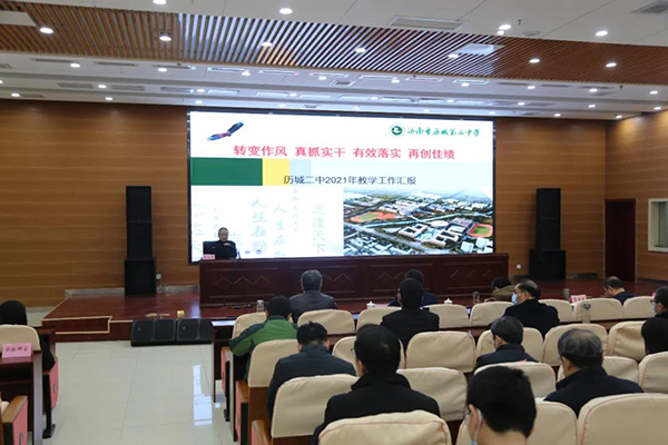 接着,济南市教研院院长助理田序海对全市教学工作进行了汇报。他向与会教师介绍了2021年高中教学工作安排,提出“科学备考,精准培优”两个关键词,要求各学校重视对思维程序的规范与指导,明确目标定位,落实责任担当。