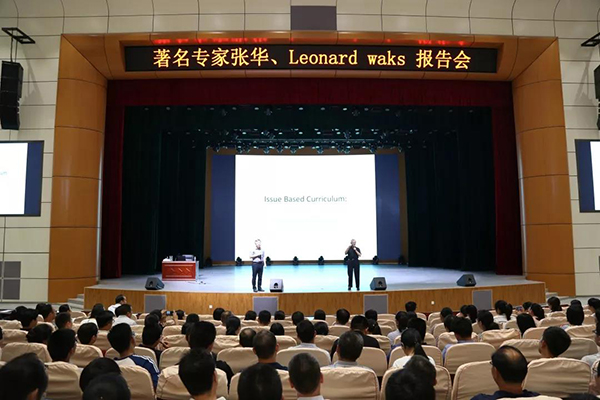 8月29日,历城二中教育集团全体教职工齐聚闻韶艺术馆,参加新学期开学培训会。稼轩学校小学部李秀伟校长主持活动。上午,杭州师范大学教育科学研究院张华教授为老师们带来题为《论素养本位课堂教学》的主旨报告,针对如何走向“素养本位教学”给出了六大行动建议,希望老师们能够打破学科壁垒,推动学生更好发展。下午,美国杜威研究协会前主席、坦普尔大学Leonard Waks教授带来题为Issue Based Curriculum:Coherence and Progression的报告,张华教授协助翻译。Leonard Waks教授从古希腊的自由艺术入手讲述了课程的发展,并讲解了问题本位螺旋课程的五步过程。Leonard Waks教授在报告后与老师进行了互动交流,就老师们提出的疑问给予了答复。