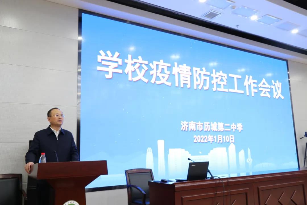 1月10日晚,济南市历城第二中学于日新楼报告厅召开学校疫情防控会议,全体教育管理干部参加会议,历城二中党委书记、校长李新生出席并讲话。