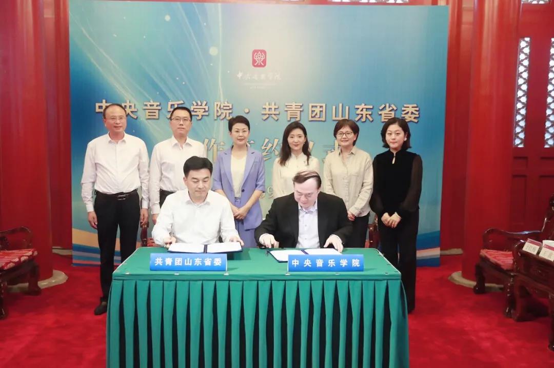 9月15日,共青团山东省委与中央音乐学院在北京签订合作协议。团省委书记刘天东,中央音乐学院院长俞峰、副院长于红梅,济南市副市长王桂英,共青团济南市委书记张熙,济南市历城区教育和体育局局长、历城二中校长李新生等出席签约仪式。中央音乐学院中华优秀传统文化传承基地山东实践中心落户济南历城二中。