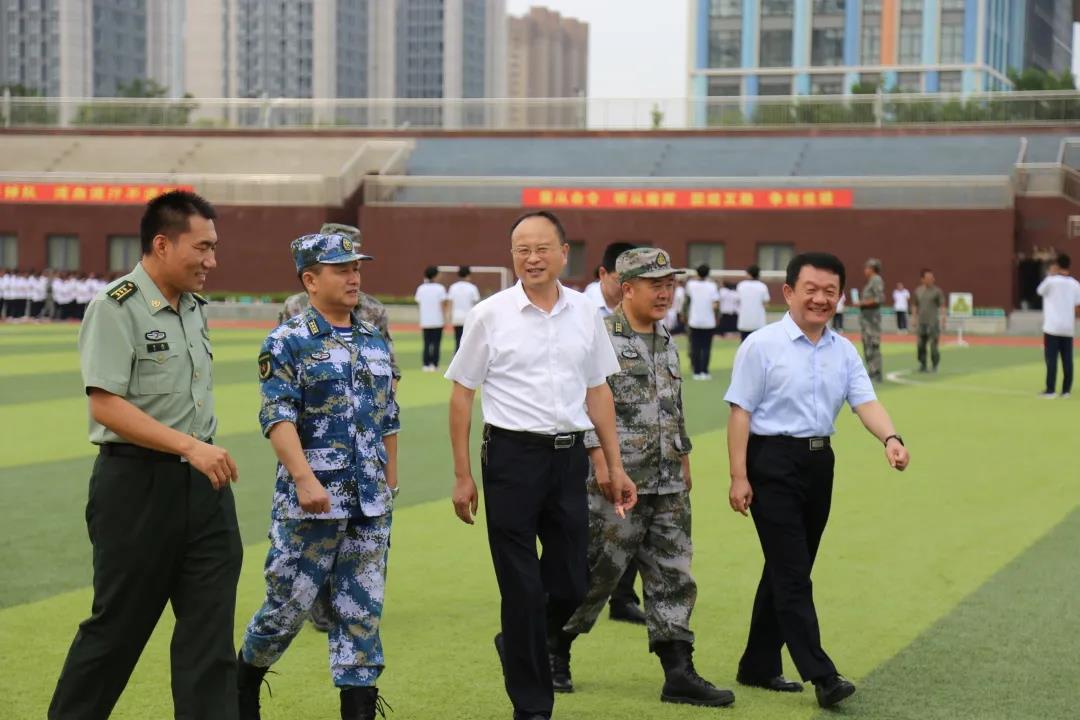 9月3日上午,济南警备区司令员崔少良到历城二中现场指导新生军事训练工作。战备建设处处长夏冬冬,历城区委常委、人武部部长于涛,历城区政府副区长李金国、历城二中校长李新生陪同检查。