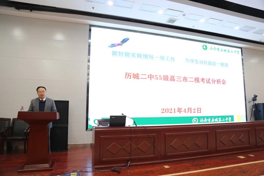 为全面总结全市模拟考试成绩,反思教学得失,更有效地备战下一阶段的高考复习,4月2日下午,历城二中55级高三召开了市模拟考试质量分析会。学校党委书记、校长李新生,副校长、高三年级主任陈国强以及高三全体教师参加了会议,会议由年级副主任李正华主持。