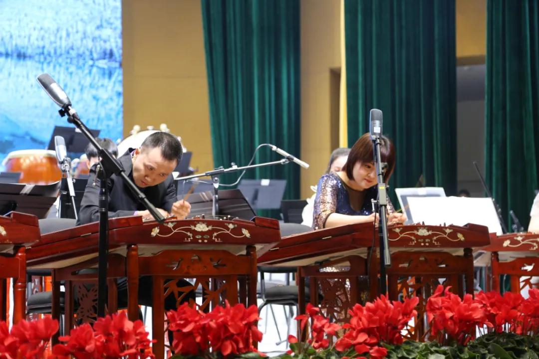 音乐会分为上下两个半场。上半场由学校国乐团团长田玉坤指挥。民族管弦乐合奏《丰收锣鼓》,充分发挥中国丰富多彩的打击乐器的表现能力,既有民族风格,又具时代特点。细腻深沉、委婉动情,令人催人泪下的《悼歌》,让师生回忆起2020年之初共同抗争疫情的场景,缅怀在疫情中逝去的生命,致敬逆行英雄。曲风一转,《百鸟朝凤》以热情欢快的旋律与百鸟和鸣之声,表现了一派生气盎然的大自然景象。朗朗上口的《前世今生》,带师生重回西子湖畔,娓娓将爱情传说道来。《青年舞曲》以美丽青春为放歌,以活泼明快的舞曲节奏,咏歌了青年人在歌舞中起舞,在舞曲中歌唱的欢乐场面。