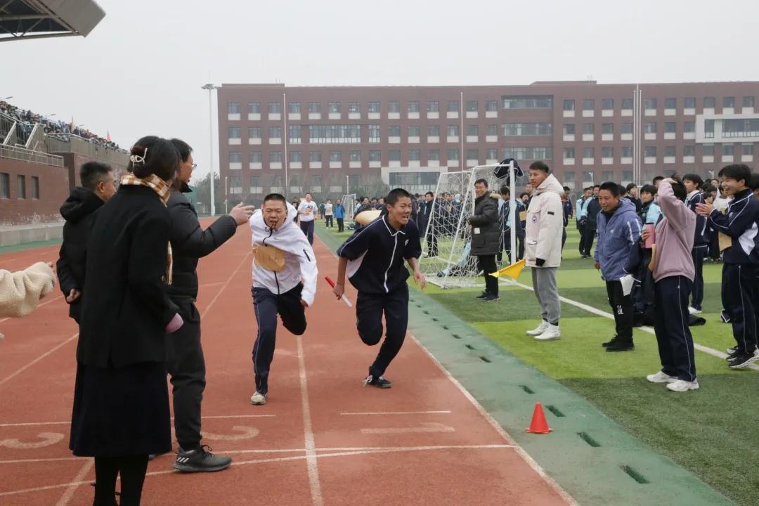 同学们奋力奔跑,紧握住接力棒,一棒又一棒地传递下去,这其中传递的更是勇气、希望、团结的精神。努力拼搏,即使摔倒,他们也立马站起,继续朝着前往奔去。同时,观众的呐喊与欢呼,给予参赛选手莫大的力量。虽然天气寒冷,但是老师与同学们一声又一声的加油,温暖了他们的心。