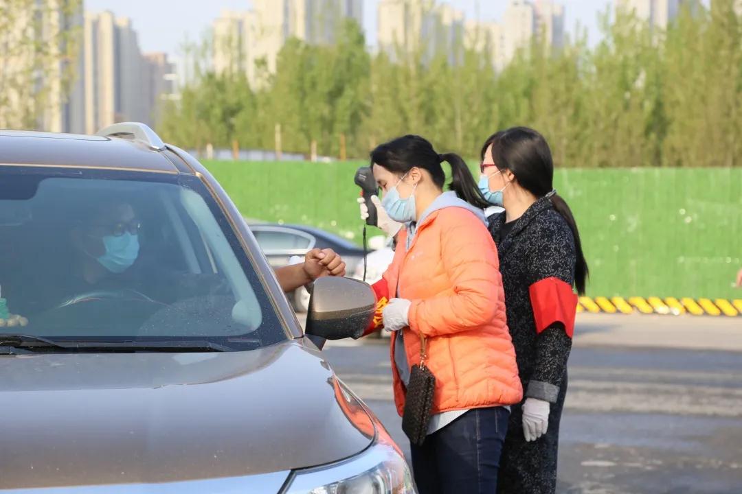 根据4月9日召开的高三线上家长会的要求,家长将车辆开到校门口后,放下孩子和行李驶离。学生带着健康卡在校门口复测体温,复测合格有序进入学校。