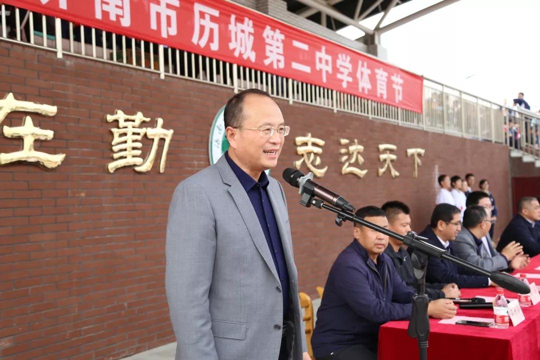 10月17日下午,历城二中2019年体育节开幕仪式在我校操场举行。首先,进行第一项迎国旗、迎会徽。随后,李矿水副校长致开幕词。