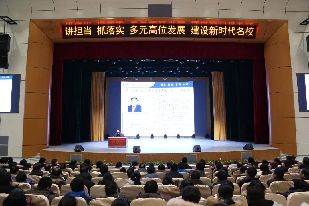 2月18日,历城二中“讲担当、抓落实”全体教职工专题学习活动在闻韶艺术馆大礼堂举行,历城二中、稼轩中学、唐冶中学全体教职工参加了本次学习活动。工会主席王萍主持本次会议。