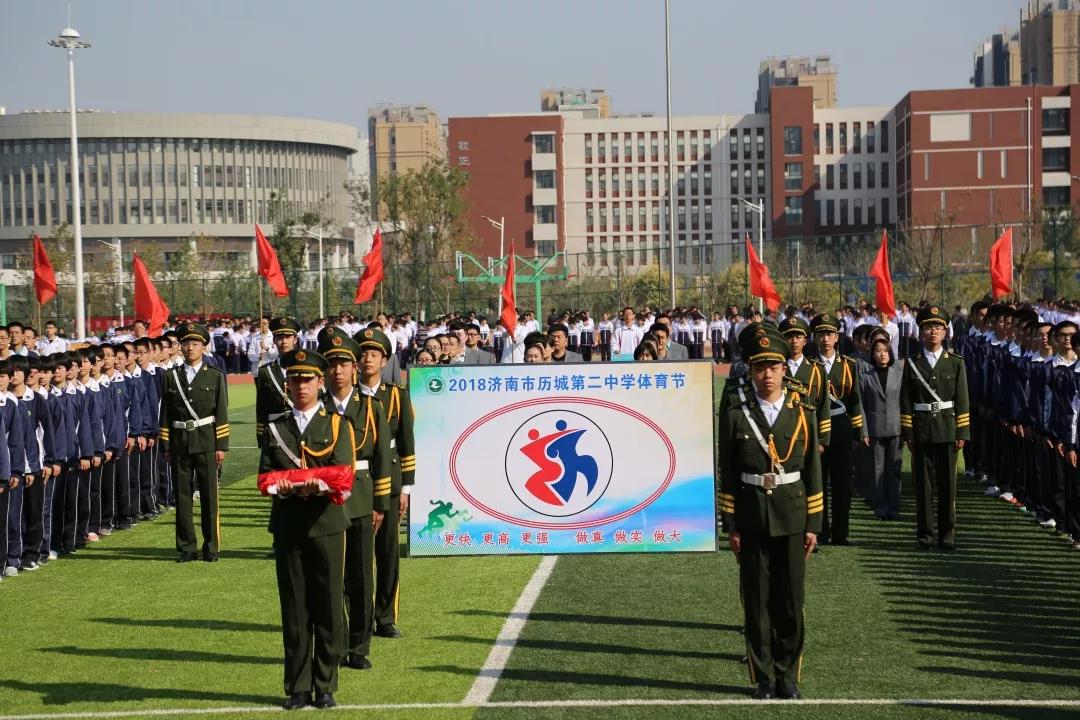 10月18日,历城二中2018年体育节正式拉开帷幕。首先,各级部运动员代表方队和裁判员方队入场,他们昂首挺胸,斗志昂扬,英姿飒爽,意气风发。在全体师生的注视下,五星红旗冉冉升起,洪亮的歌声溢满了同学们对祖国的热爱,以及对本次体育节的期待。